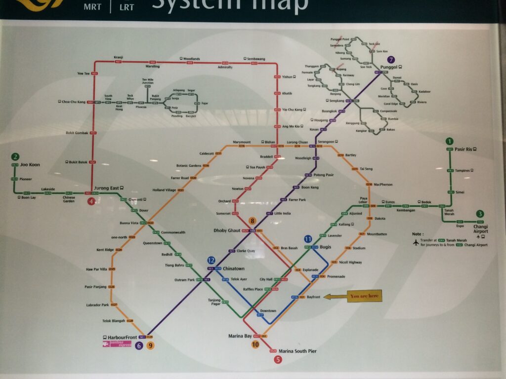 シンガポールの面積は東京23区と同じくらいだそうで、メインの移動手段は「徒歩」「タクシー」「MRT(電車)」「バス」。ただし人口密度は東京の方が倍なので、密集度は半分です。たしかにバスも空いてました。