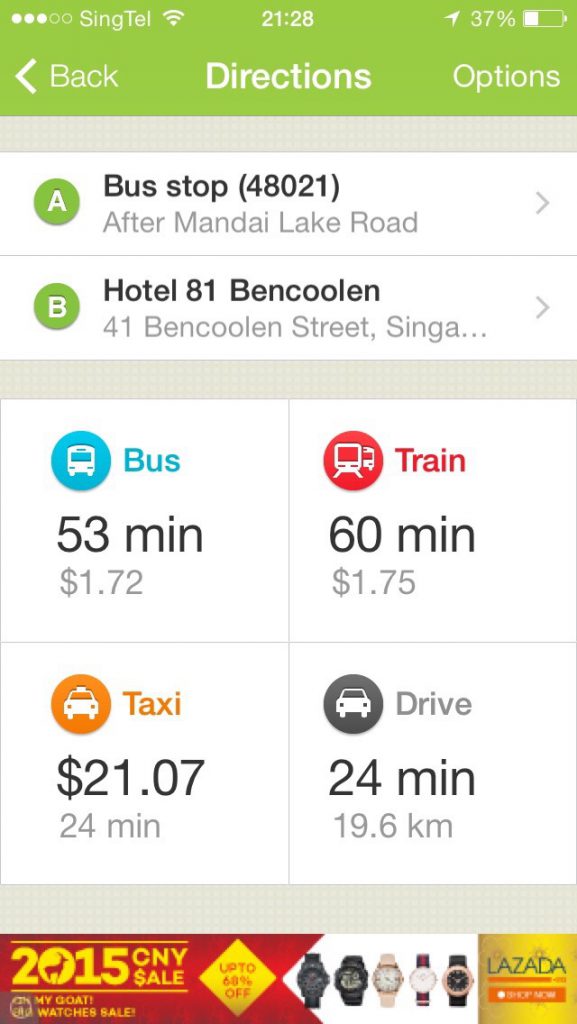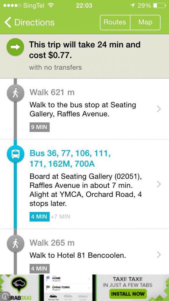 在住の友人に教えてもらった移動用シンガポールアプリ gothere.sg lite